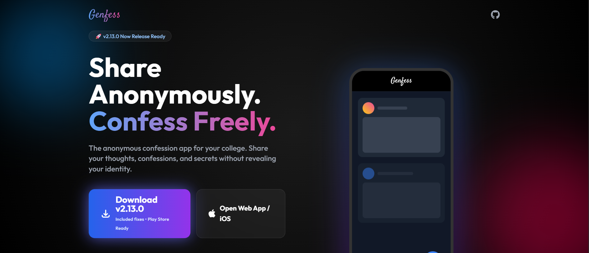 A private, anonymous campus interaction platform built for college communities. Genfess allows students to express thoughts, confessions, and opinions anonymously within a controlled college environment.
