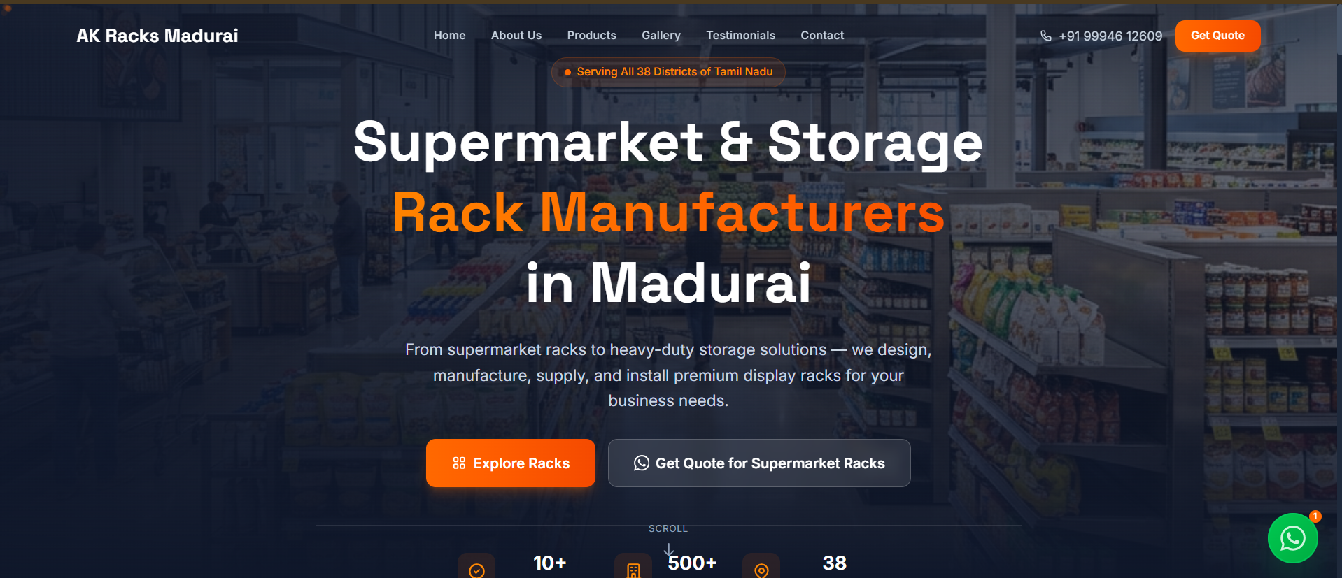 Improved brand visibility and structured online catalog for Racksmadurai.
